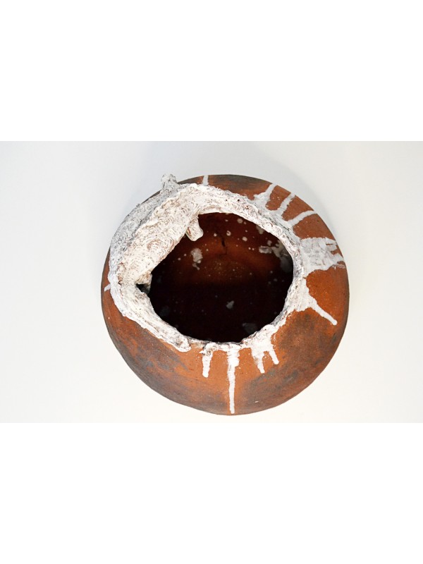 Vas realizat din argilă fină roșie arsă de două ori, ultima ardere atingând 1050°C.